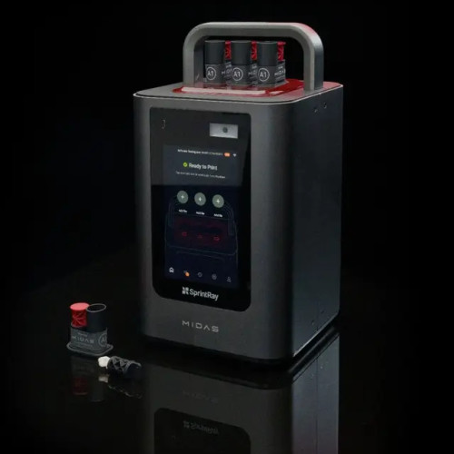 Dé ultieme 3D-printer voor het vervaardigen van chairside restauraties die gebruik maakt van Digital Press Stereolithography (DPS). Hiermee worden de uitdagingen van het printen van sterk gevulde viskeuze materialen overwonnen, waardoor deze 3 kronen, 6 inlays of 9 veneers kan printen in minder dan 10 minuten!