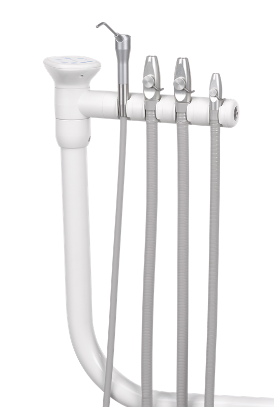 Bij A-dec worden de instrumenten door middel van 1 knop allemaal tegelijkertijd doorgespoeld met een waterstraal: snel, schoon en eenvoudig.